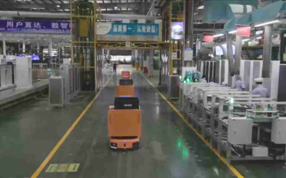 为车载冰箱物流配送打造的智能解决方案,,包含产中物流通过潜伏举升AMR搬运至线边,,产后成品物流智能仓储,,流程包含产中物流智能齐套入库,,,,线边安灯叫料AMR智能配送至线边,,,,成品入库、、、出库,,,,通过无人堆高车机器人,,智能仓储管理替代人工作业管理,,,,实现更高存储、、、、更高效率、、更具柔性化的解决方案。。。。